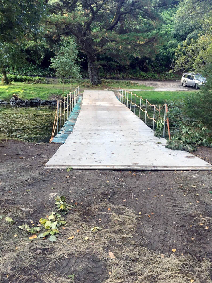 In conjunction with our client, we then laid track matting over the system, linking the river bank seamlessly with the floating bridge providing access.